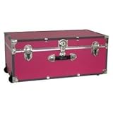 This Footlocker is an easy way to pack up for college or store stuff in the barracks. Throw your clothes or bedding into this trunk, throw it in the car and take off. Once at your new dorm, unpack what you need into your closet and keep the rest stored for another day. These Footlockers can also double as coffee tables, with limited dorm space you'll want to keep this in front of your futon as the perfect sized table to set food, drinks or homework. And don't forget you can cover your Footlocker with a tapestry to keep it protected if you use it as a table. About:Durable Wooden Construction, Heavy Gauge Vinyl Covering, Color Coordinated High Impact Styrene Binding, Nickel Hardware, Easy Open Push Button Key Lock, Dust & Moisture Resistant Tongue & Groove Closure. Wheeled footlocker, Lined, Two Recessed Wheels, Plastic Handles, no tray.