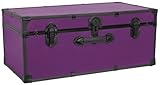 The purple Collegiate "II" Collection combines great style with sturdy construction, making it the ideal trunk! This travel trunk can serve numerous purposes! Constructed of heavy gauge vinyl. Wood frame construction. Brass plated hardware with one plastic handle. Easy open push button key lock. Dust and moisture resistant. Weighs approximately 20 pounds. Proudly made in the United States. (not meant for use as a seat) Assembly level/degree of difficulty: No Assembly Required. Made in America